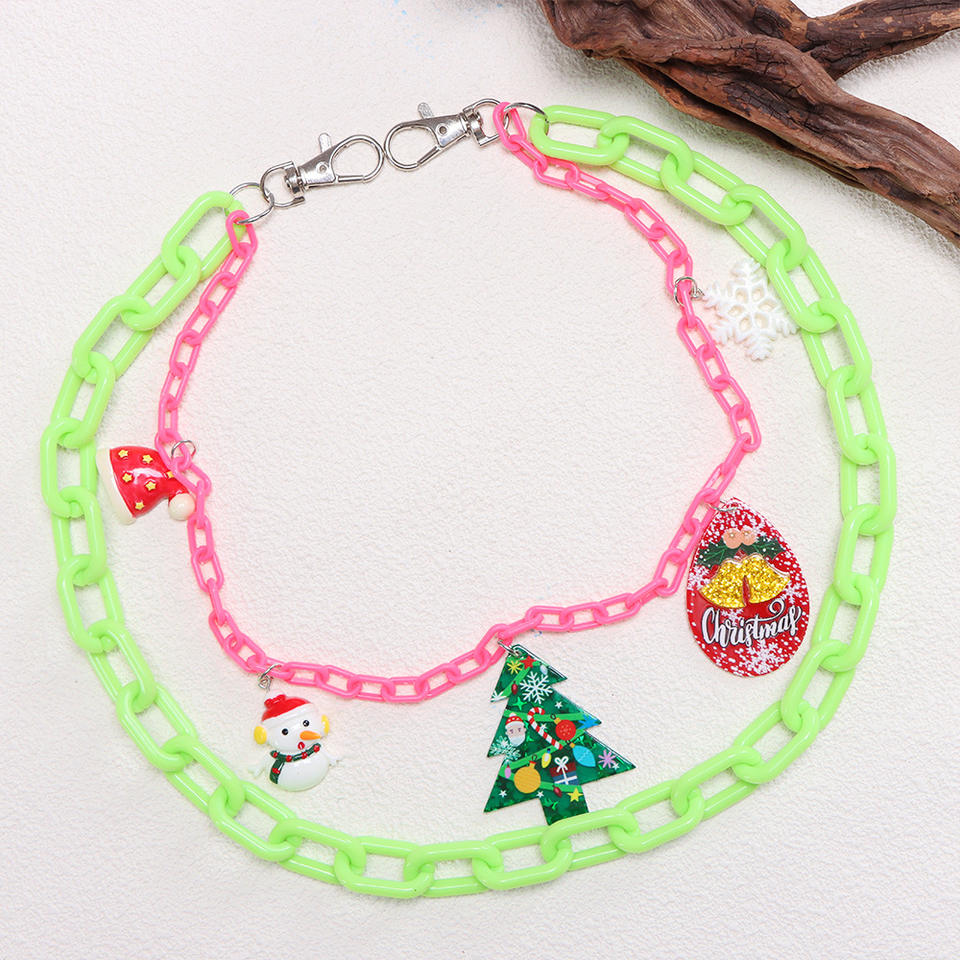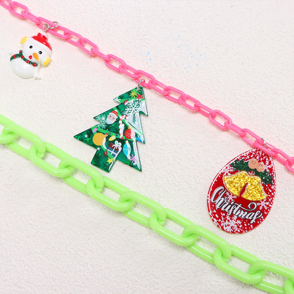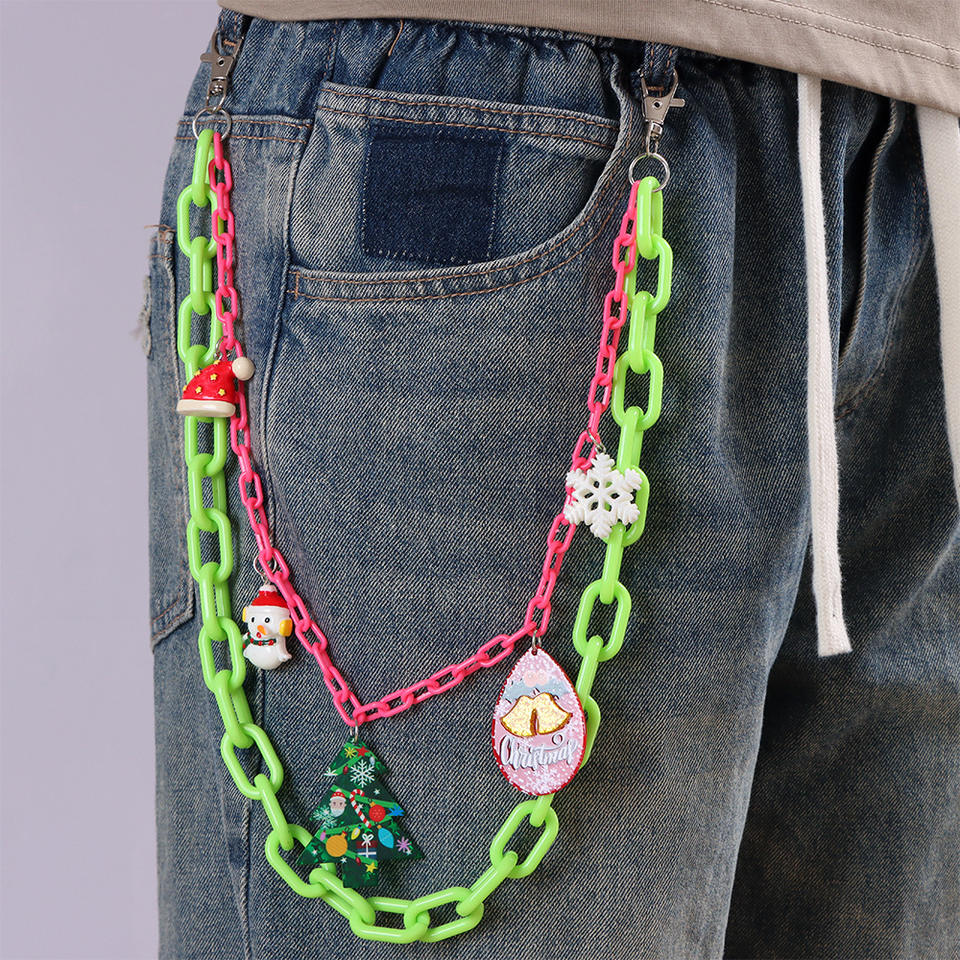 Cadena de Pantalones de Acrílico de Doble Capa Colorida, Colgante Navideño, Cadena de Cintura Unisex Estilo Punk, Decoración de Copo de Nieve, Árbol y Campana en Verde y Rosa