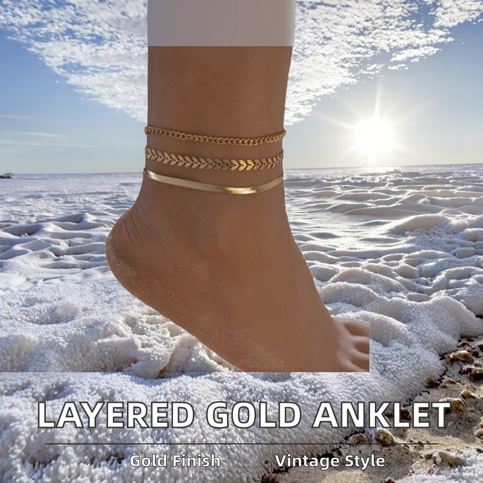 Tobillera de cadena de serpiente chapada en oro de doble capa para mujer