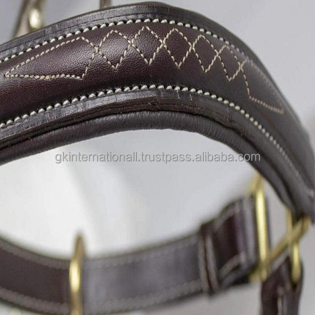 Caballo de cuero marrón de costura de doble capa, diseño personalizado con relleno suave en la corona y ajuste a prueba de óxido