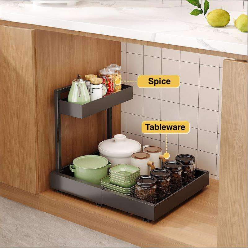 Estante de Almacenamiento de Especias Plegable de Metal de Doble Capa Extensible y Altamente Ajustable para Organizador de Accesorios de Fregadero de Cocina