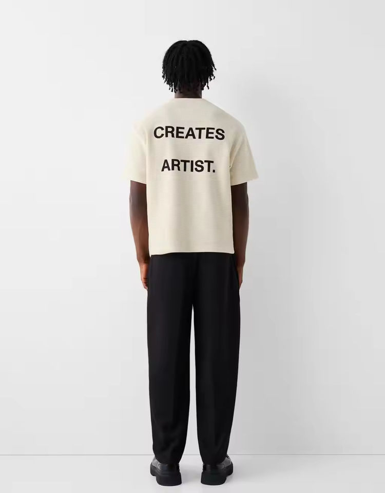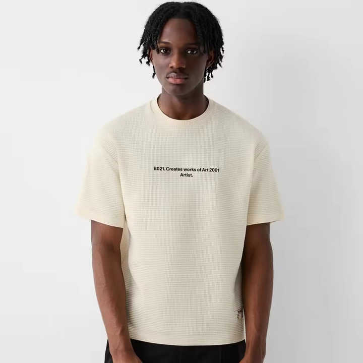 Camiseta de manga corta de punto gofrado de 260 GSM, de gran tamaño, con doble línea de costura, corte holgado y hombros caídos, de tejido grueso