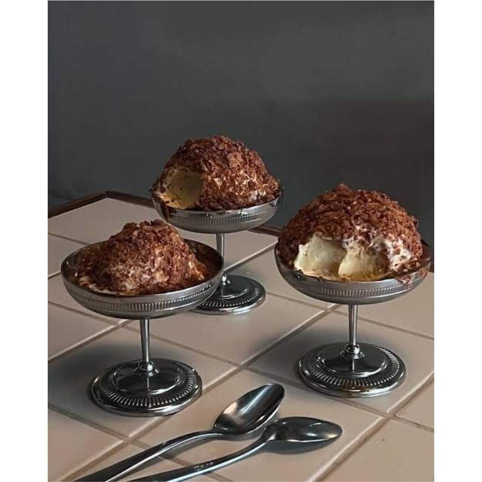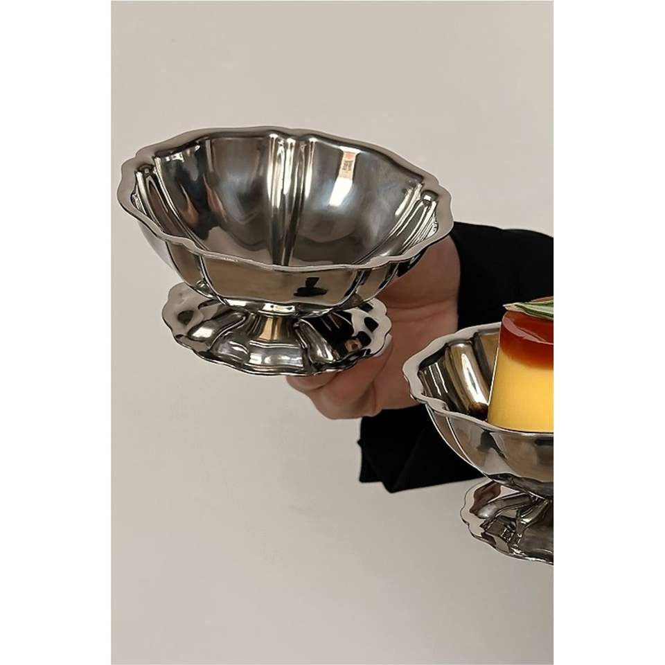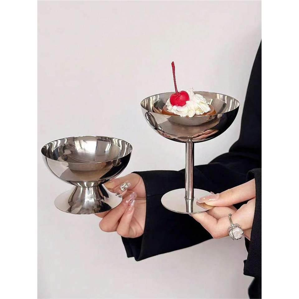 Tazón Doble de Metal para Postres, Apilable, de Acero Inoxidable, para Helado, con Pedestal, para Servir Frutas y Ensaladas, Tazones para Helado al por Mayor