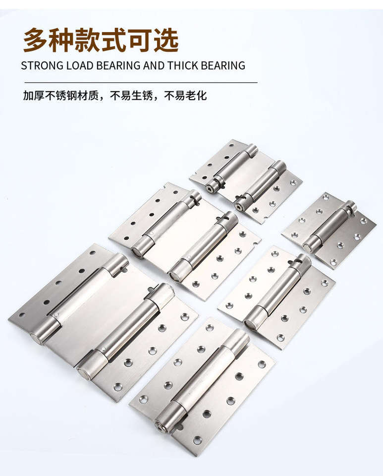 Bisagra de resorte de doble apertura de acero inoxidable, de movimiento libre bidireccional, con cierre automático, para puertas de tela vaquera, duradera, para dormitorio, hogar y oficina
