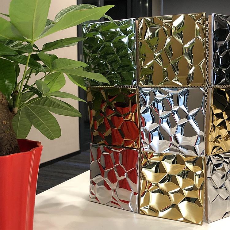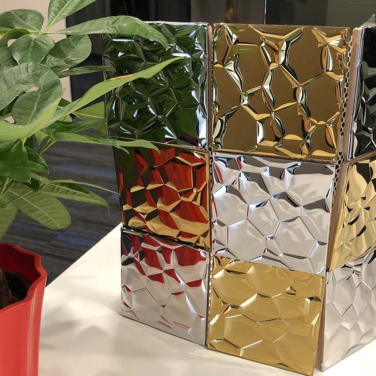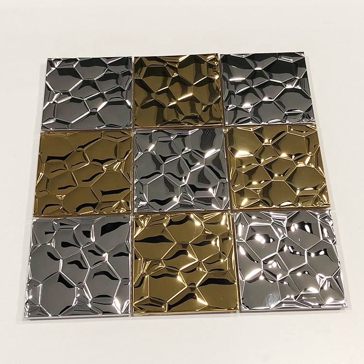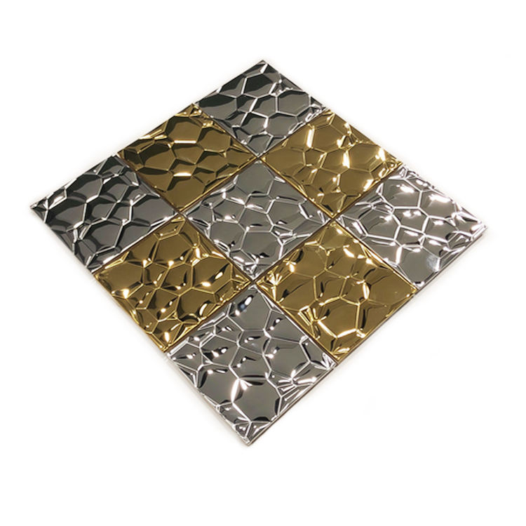 Azulejo de mosaico de acero inoxidable estampado Espejo, doble PVD plateado, dorado