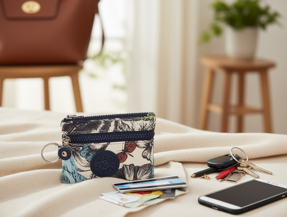 Monedero Doble con Cierre de Cremallera, 4 Pulgadas, Mini, con Correa para Muñeca, Unisex, de Microfibra y Cuero Sintético