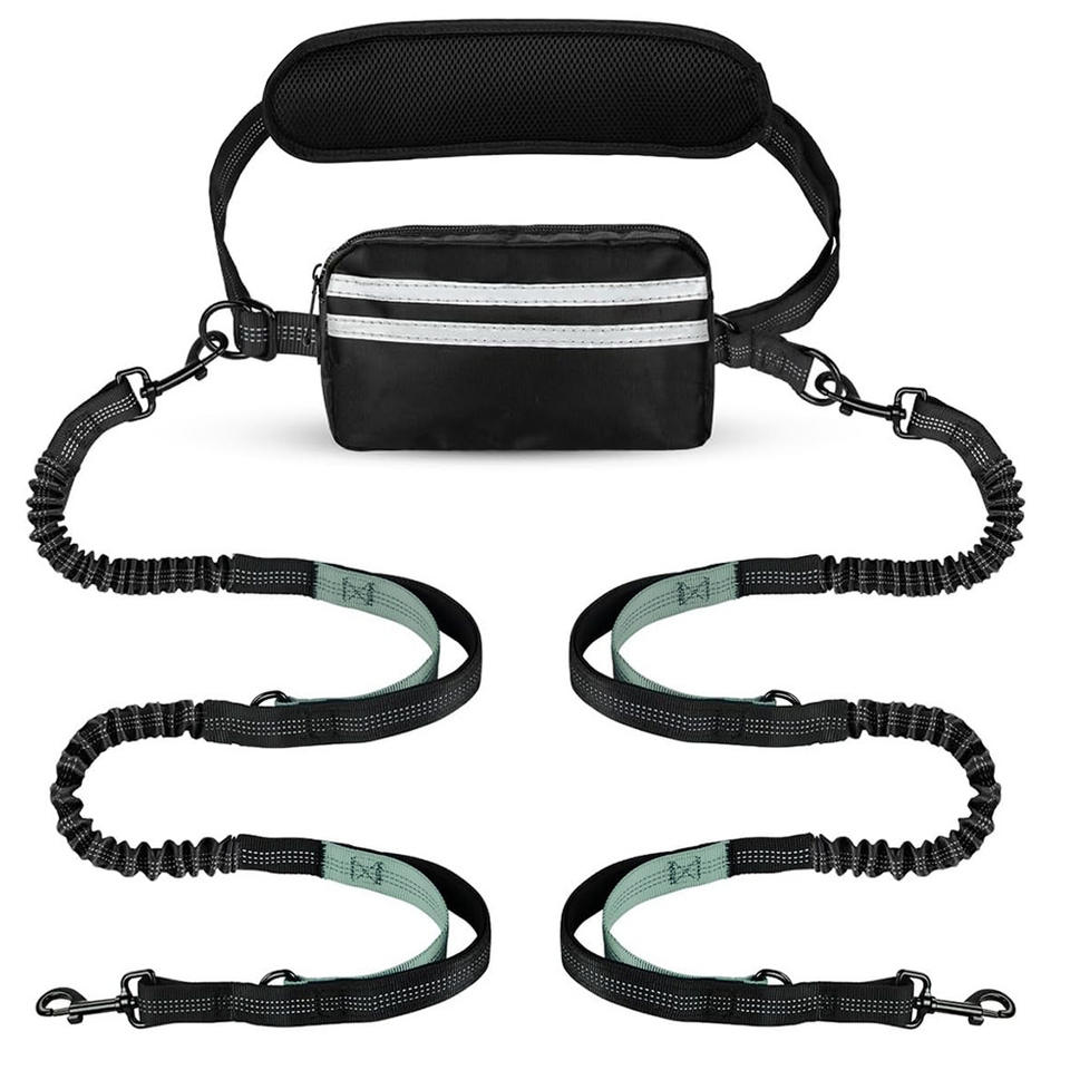 Correas de perro retráctiles dobles Manos libres para 2 perros con bloqueo de seguridad y correas de cinturón extra gruesas para caminar con perros y correr