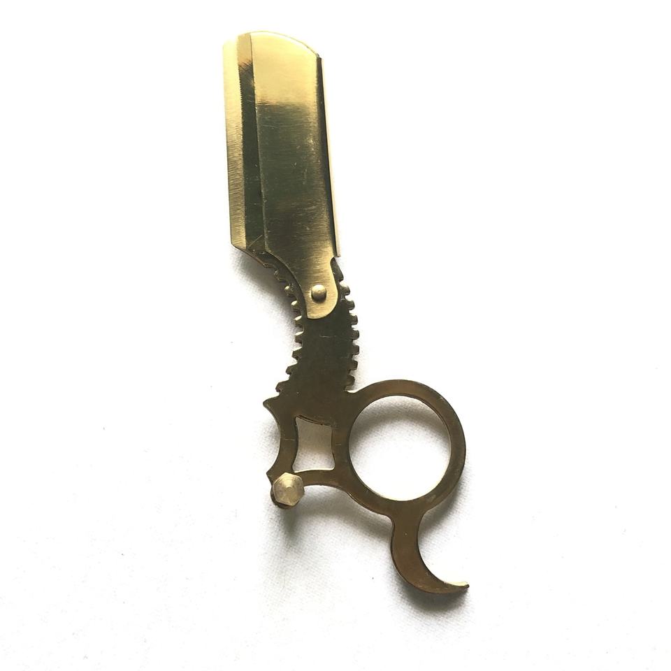 Maquinilla de afeitar de peluquero profesional con mango de doble anillo, maquinilla de afeitar de acero inoxidable plegable para hombres