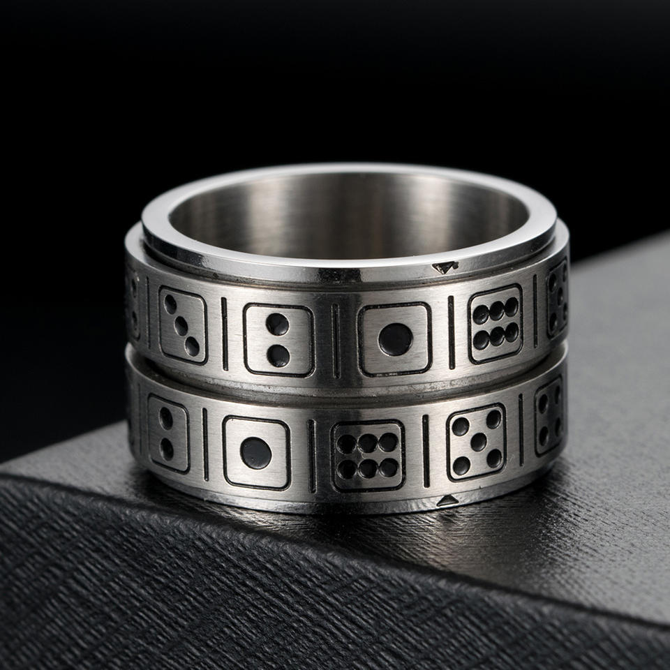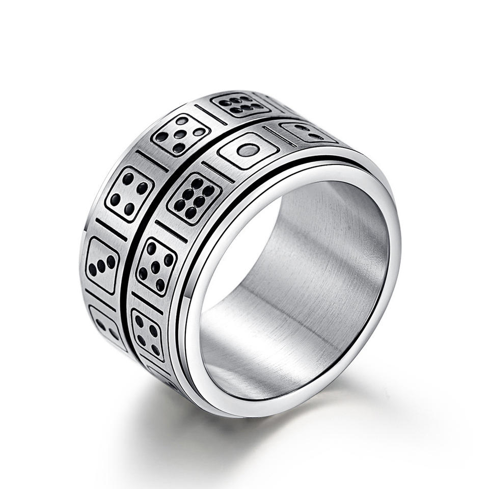 Anillo doble giratorio de acero de titanio para hombre, patrón geométrico de números, joyería informal