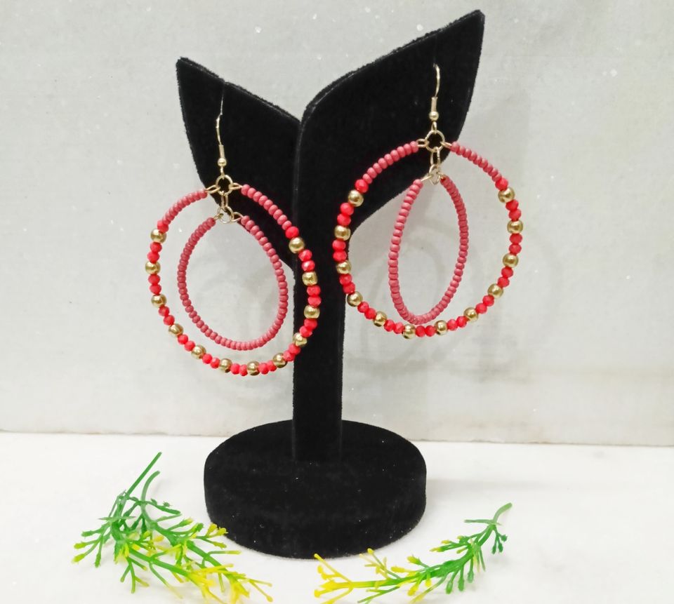 Pendientes de aro de cuentas de cristal chapados en oro de estilo bohemio de doble anillo, joyería de moda colgante tejida a mano para fiestas y regalos