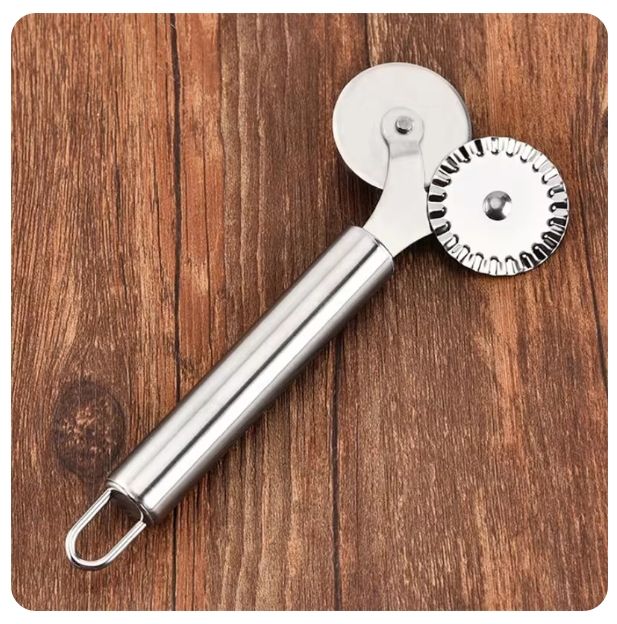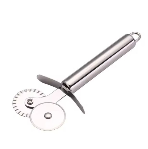 Cuchillo de acero inoxidable para Pizza de doble rollo, cortador de Pasta, Pasta, encaje redondo, rueda de Pizza, herramientas de cocina