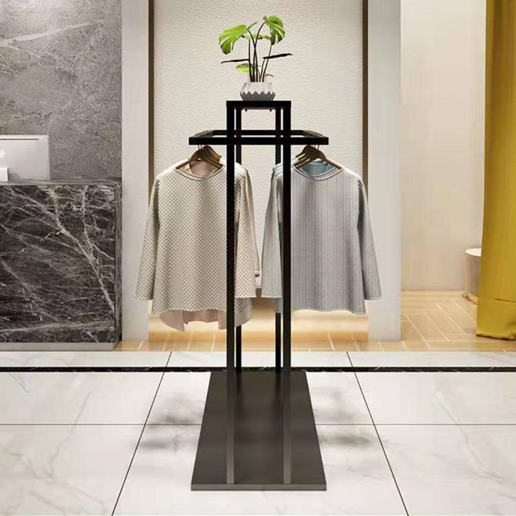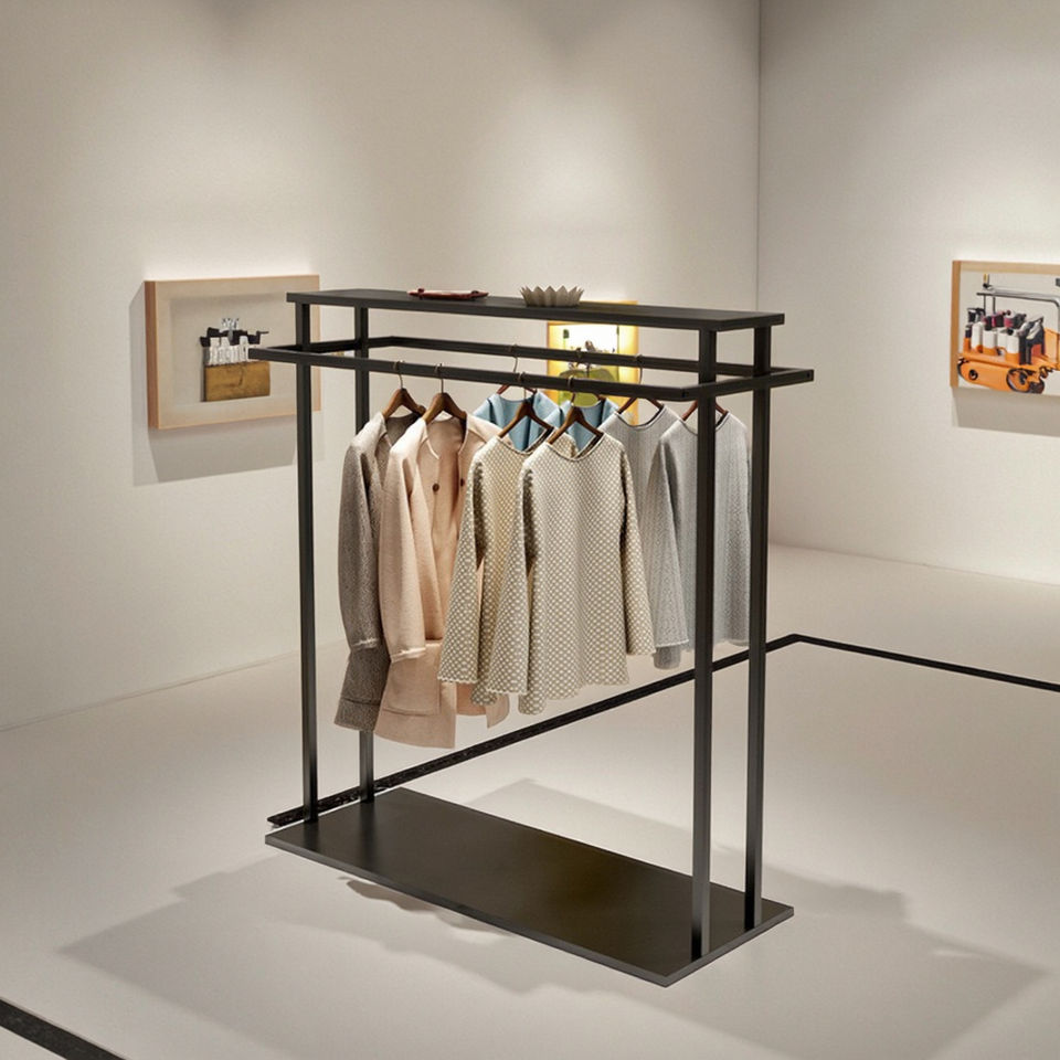 Exhibidor de Ropa de Estilo Moderno con Tubos Cuadrados de Doble Fila, Estante de Exhibición para Tienda de Ropa, para Ropa de Mujer y Hombre, Directo de Fábrica