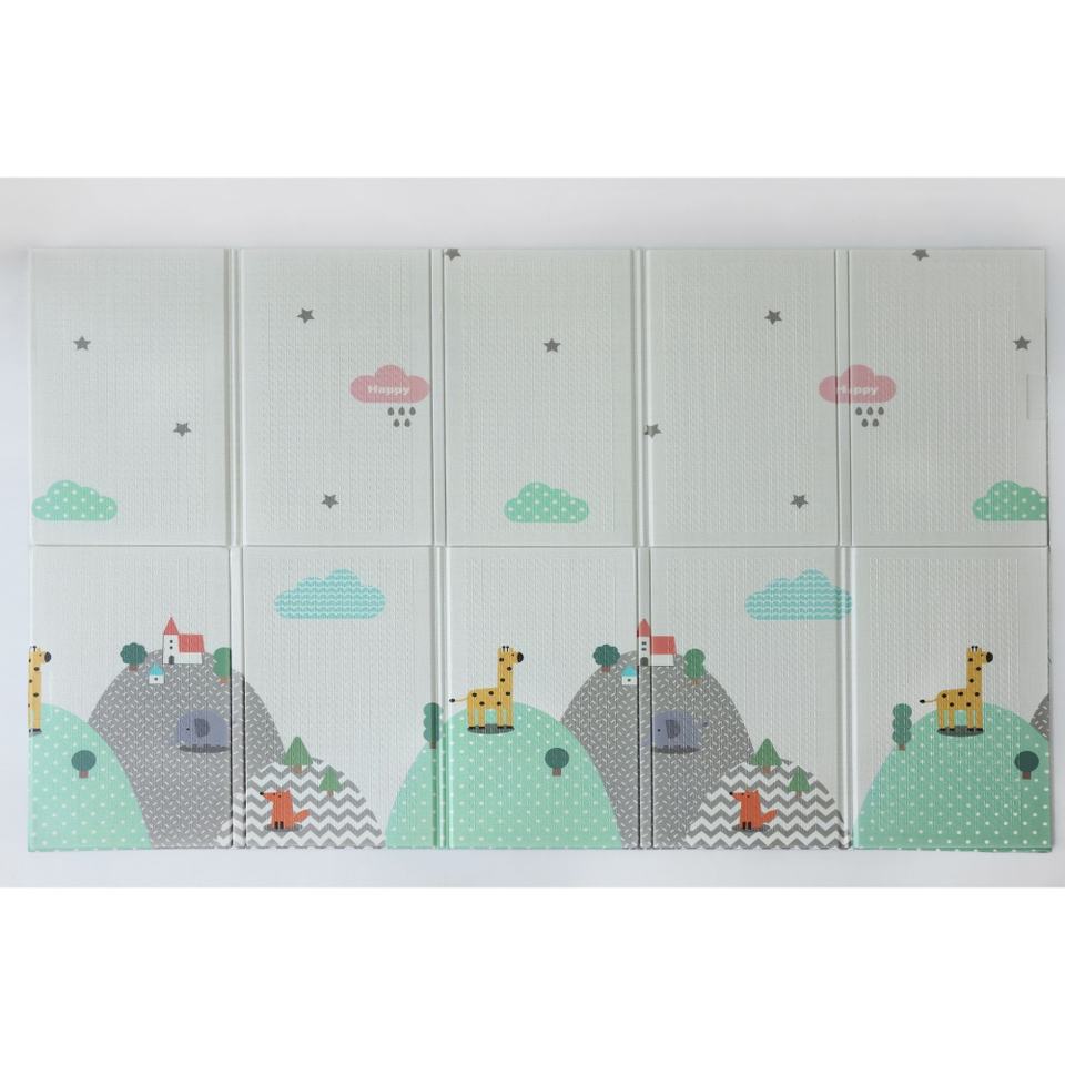 Alfombra de juego para bebés plegable de doble cara, 200x130x1cm, espuma XPE no tóxica, diseño ligero impermeable con nubes, montañas, estrellas