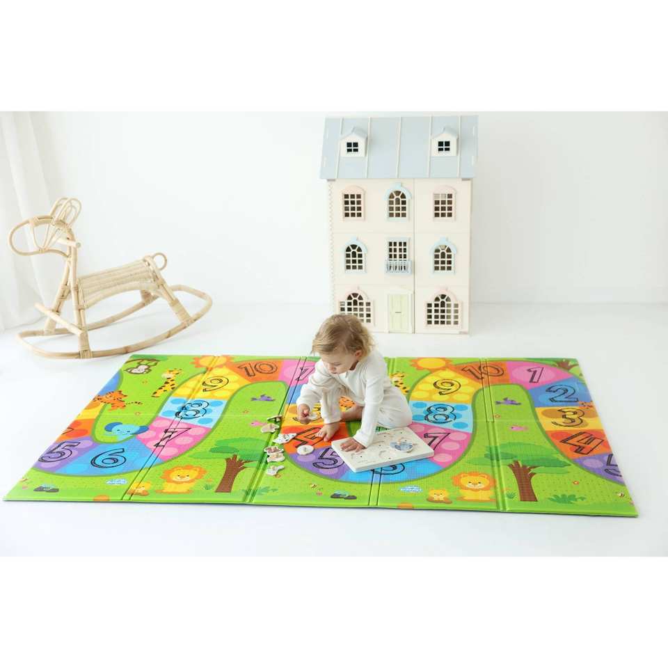Alfombra de Juego plegable de doble cara de 200x130x1cm, espuma XPE no tóxica, resistente al agua y ligera con diseño de montañas y nubes