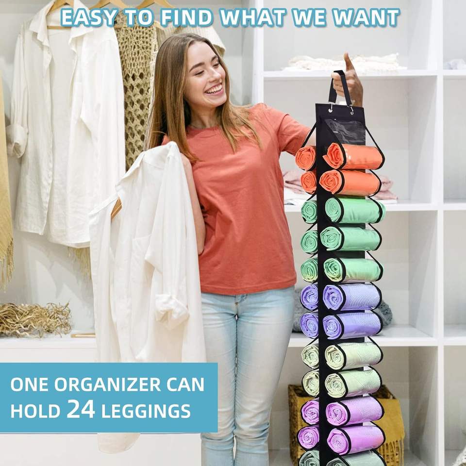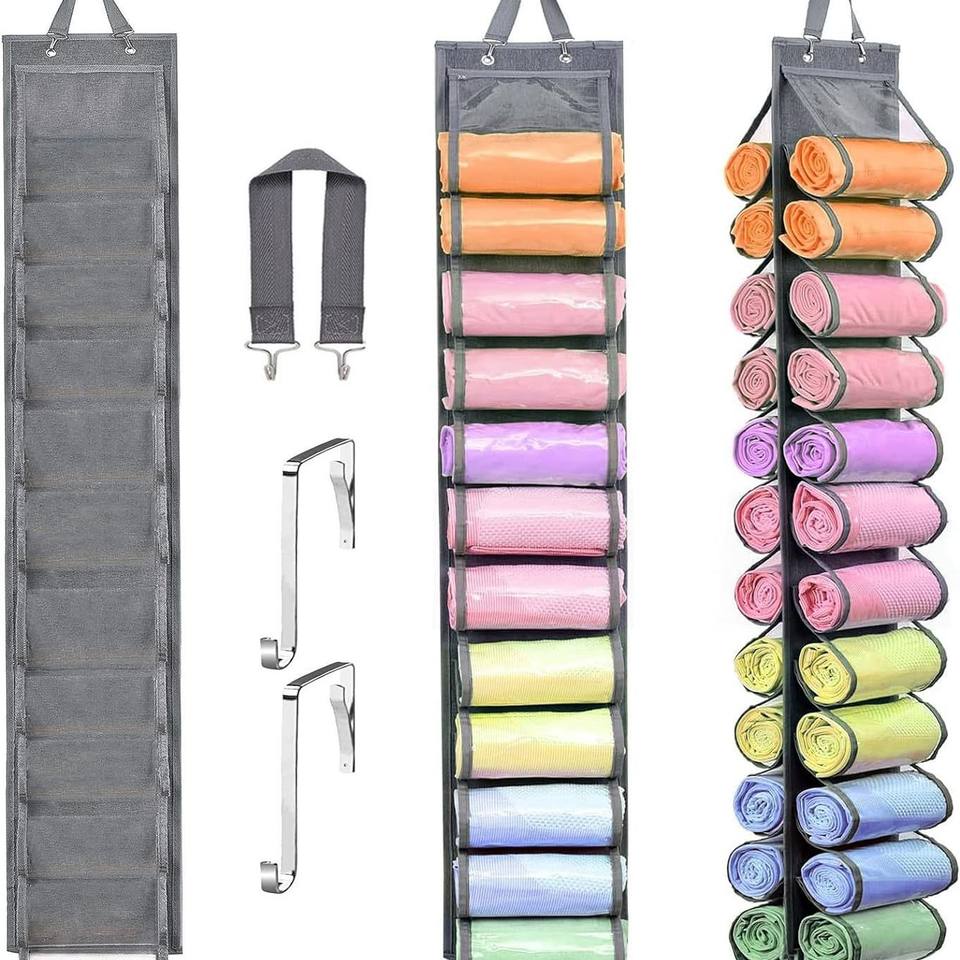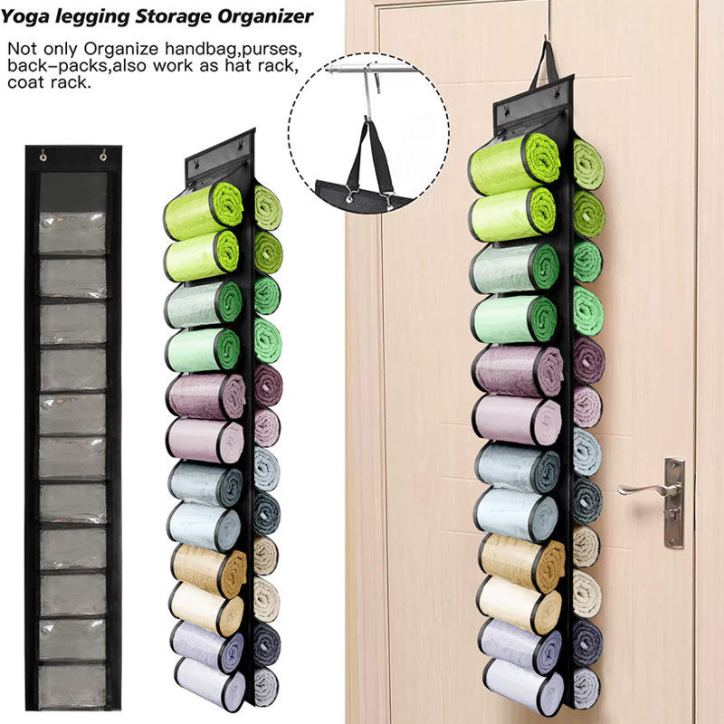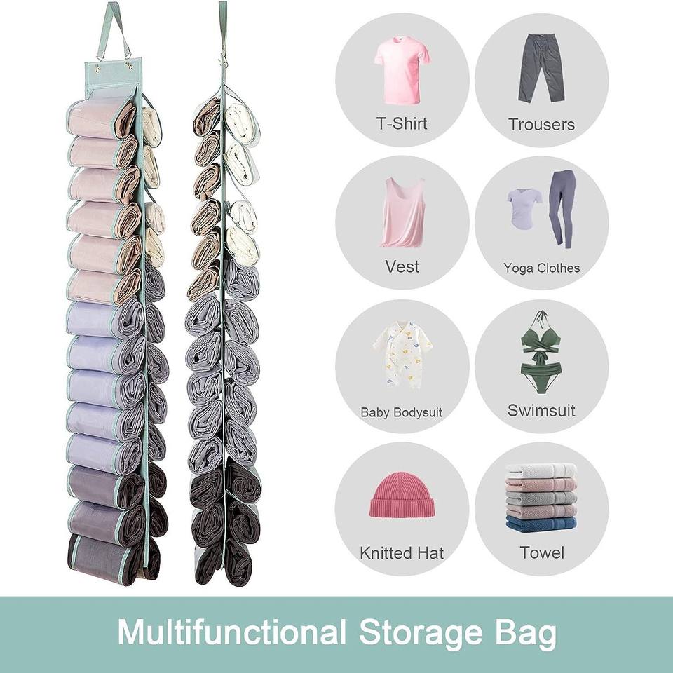 Bolsa de almacenamiento colgante de doble cara con 24 compartimentos para ropa, toallas, pantalones de yoga, organizador transparente para la parte posterior de la puerta, montado en la pared