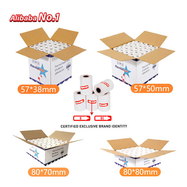 Rollo de papel térmico de doble cara 75Gsm 80X 60 57X20 57*16Mm 3 1/8X220 57Mm 50Mm 79X50 Mtr