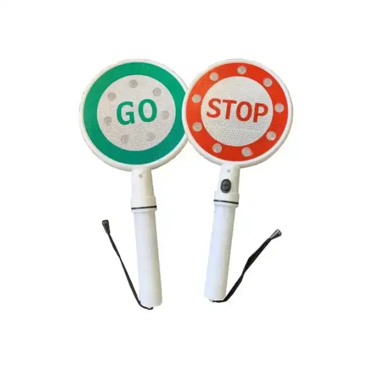 Señal de Advertencia de Parada con Flecha Verde Intermitente LED de Mano, Cono Estándar Reflectante Prismático de Alta Intensidad de Doble Cara