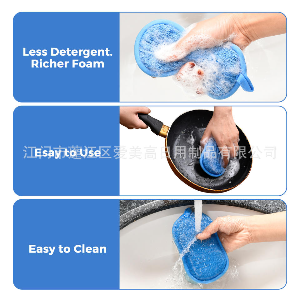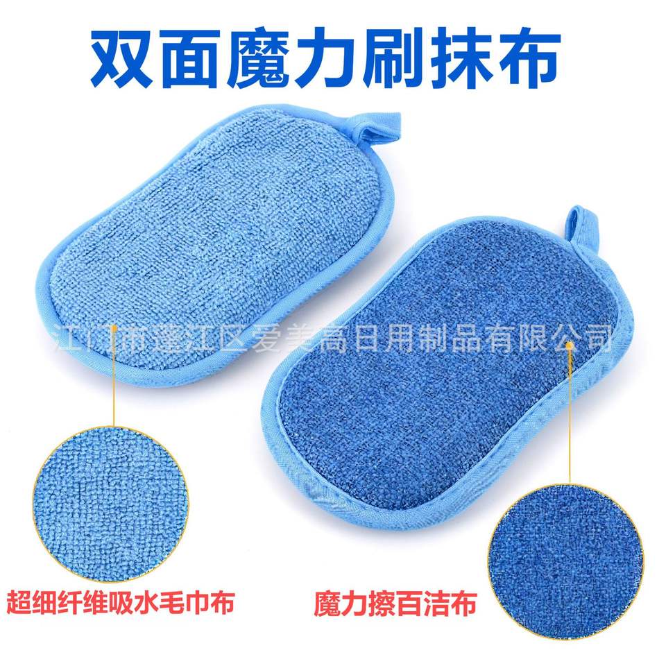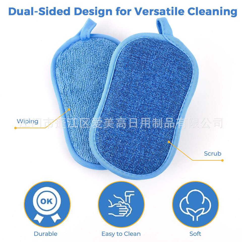Esponja de doble cara con microfibra para limpieza de cocina, para lavar platos, ollas y sartenes, de forma rectangular con función de fregado.