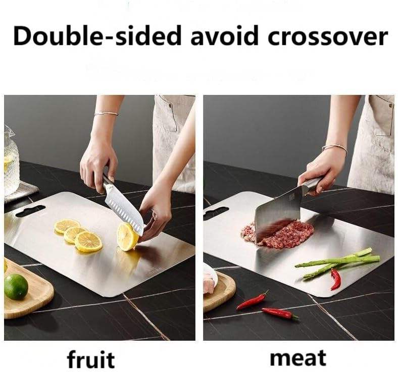 Juego de Tablas de Cortar de Acero Inoxidable de Doble Cara, Tablas de Cortar de Titanio para Cocina, para Carne, Queso, Verduras, Frutas y Cocina