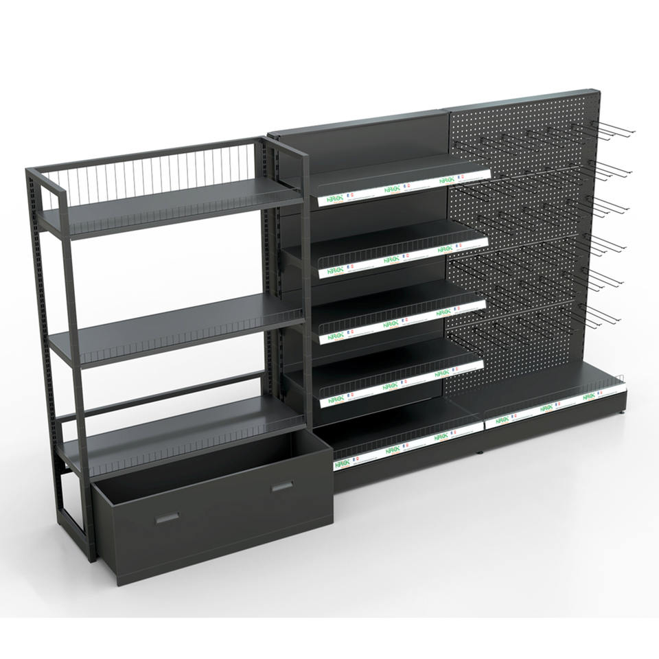 Estante de supermercado de doble cara de gran capacidad para exhibición minorista de comestibles