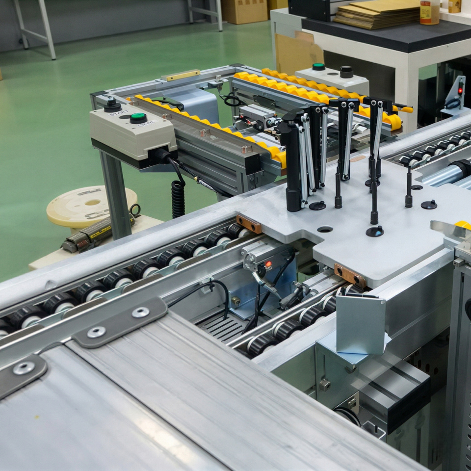 Double Speed Chain Conveyor for Workstation-Based Assembly with Smooth Start-Stop Function and High Performance Positioning