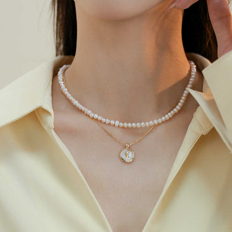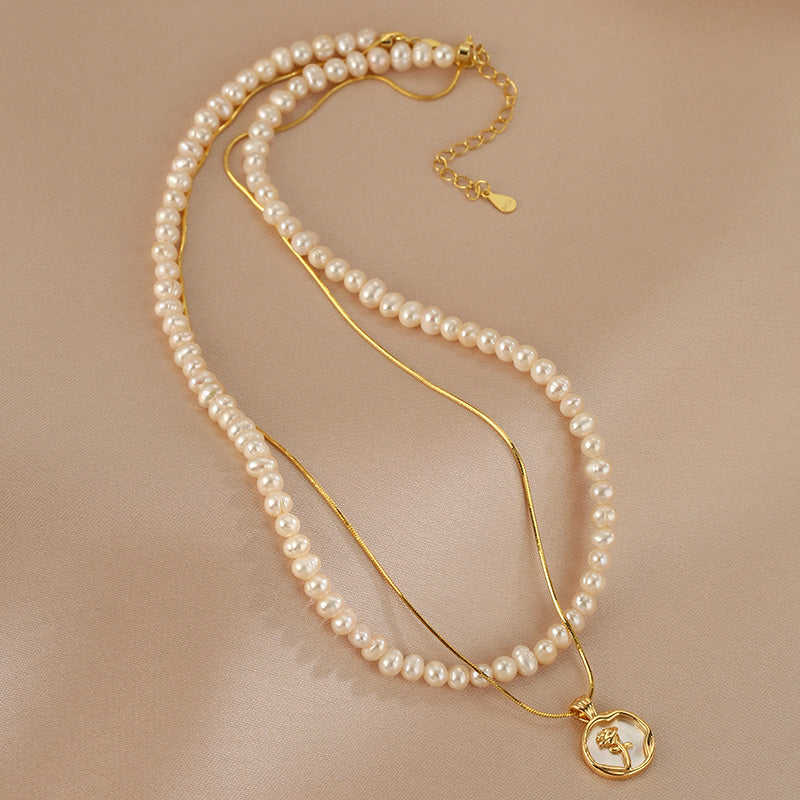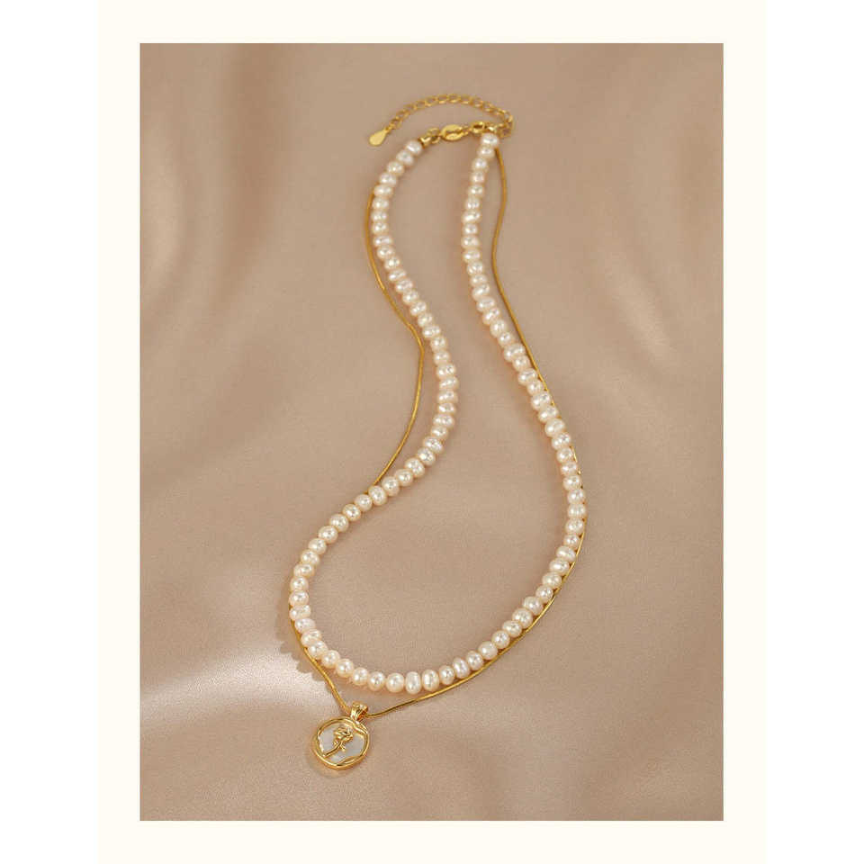 Collar de Perlas de Agua Dulce Naturales de Doble Capa WENCHI con Colgante de Rosa, Diseño de Nicho para Mujer, Cadena Elegante de 450g