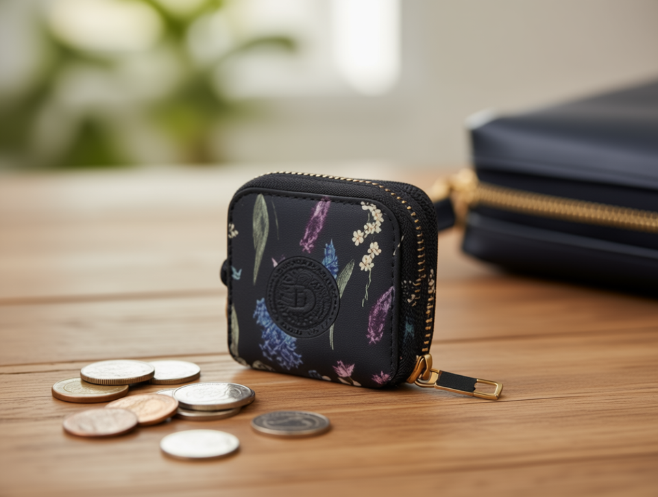 Monedero Cuadrado con Doble Cremallera de 5 Pulgadas, Mini Cartera Unisex de Microfibra y Cuero Sintético