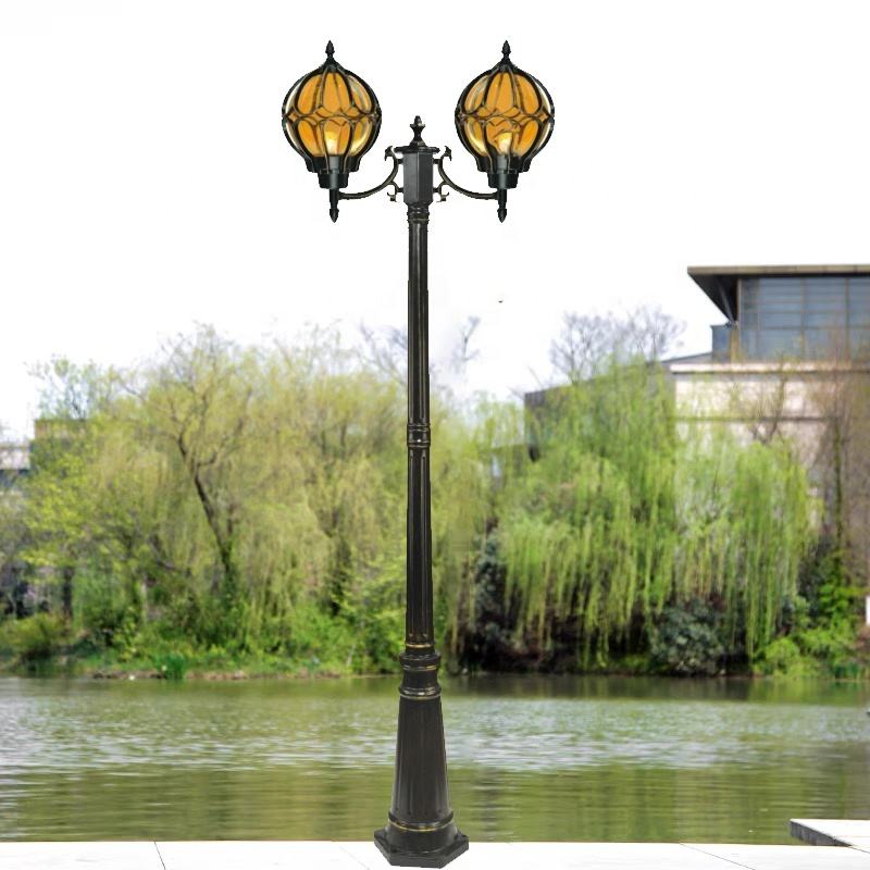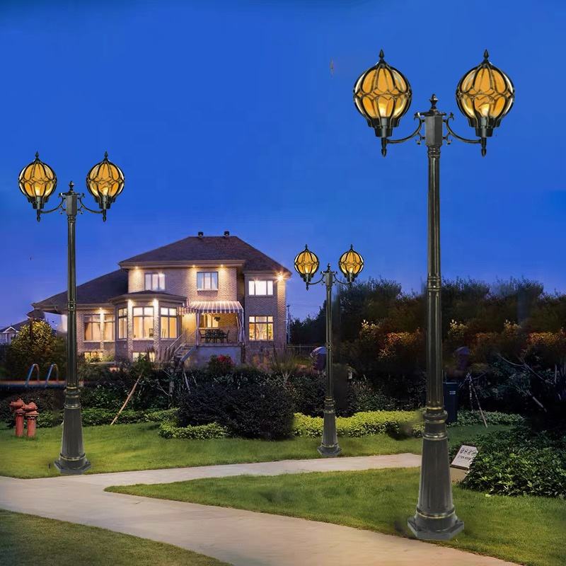 Lámpara de luz de jardín circular de doble brazo LED Ley exterior y jardín paisaje retro patio carril luz de camino