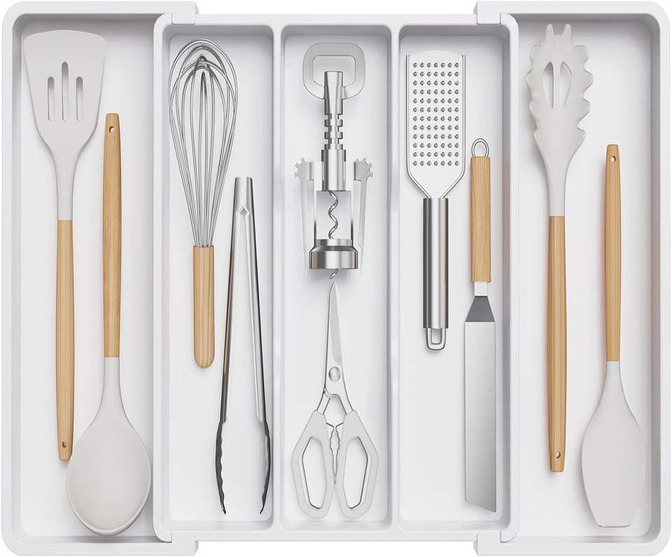 Caja de Almacenamiento con Doble Cajón Extraíble para Cocina, Organizador de Cubiertos Multicapa, Caja de Almacenamiento para Herramientas de Gabinete