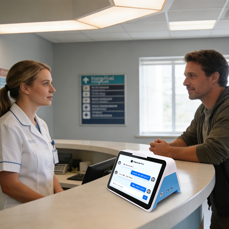 Máquina de Traducción de Doble Pantalla, Traductor de Voz con IA, Sistema de Traducción de Escritorio Android para Comunicación con Huéspedes en Recepción de Hotel