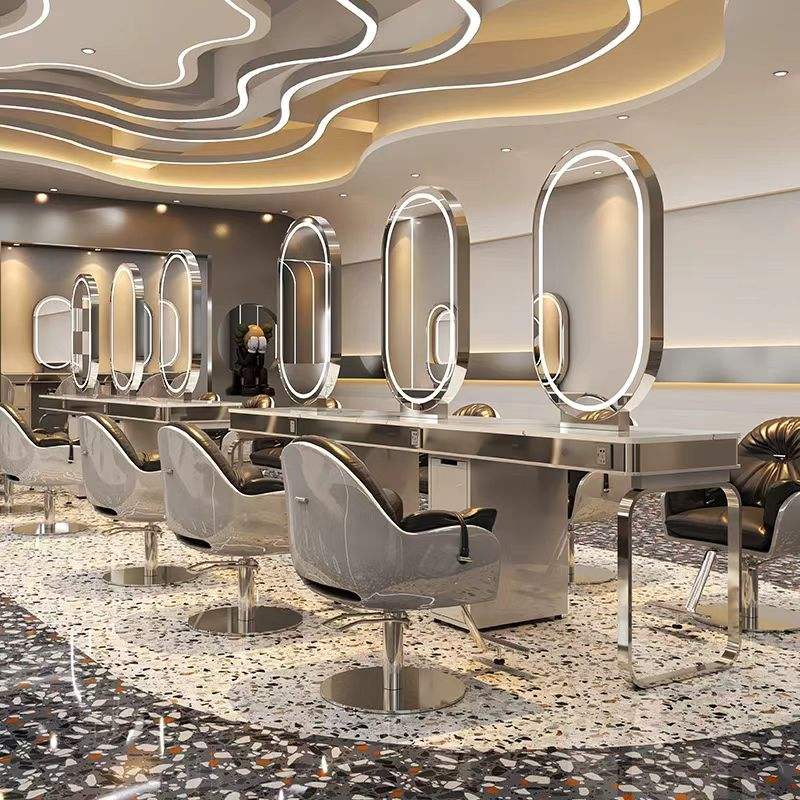 Soporte de espejo de peluquería de mármol de doble cara con Gabinete integrado a precio de fábrica