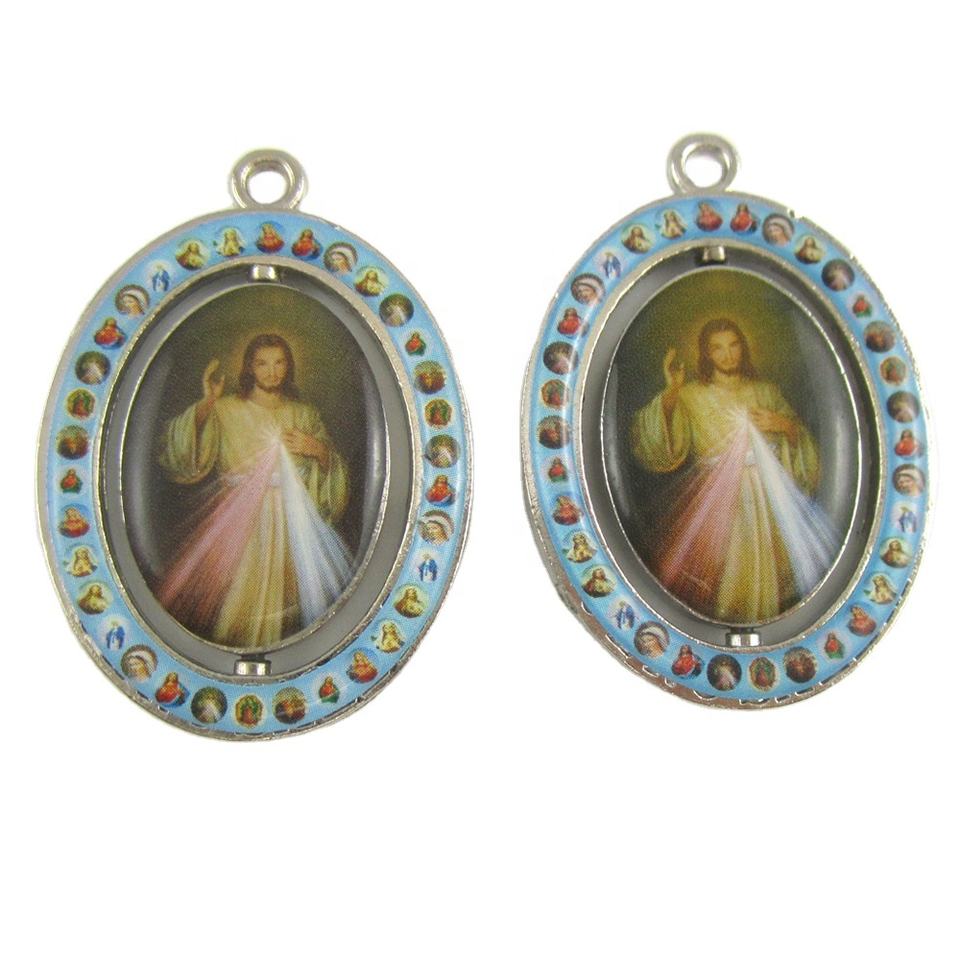 Llavero con Cruz giratoria de doble cara, con icono religioso de Jesús, Medalla de la piedad