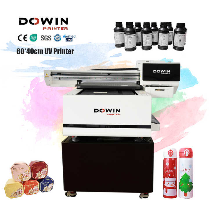Impresora de Inyección de Tinta UV de Cama Plana Dowin 6040, 2 Cabezales, Impresora de Etiquetas de Botellas a Color para Cajas de Lápiz Labial