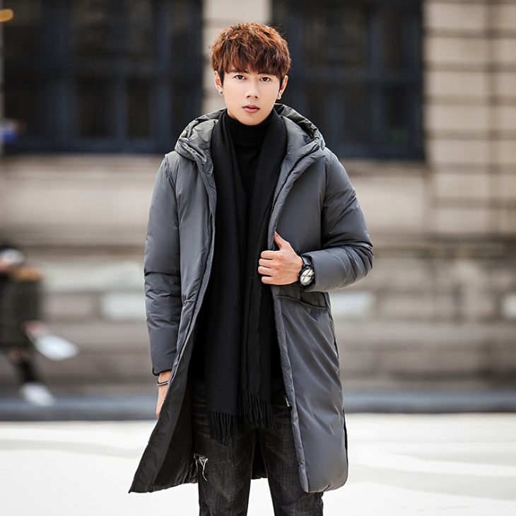 Chaqueta larga de los hombres Sección Juventud Slim pato blanco abajo engrosamiento con capucha de invierno de los hombres venta al por mayor