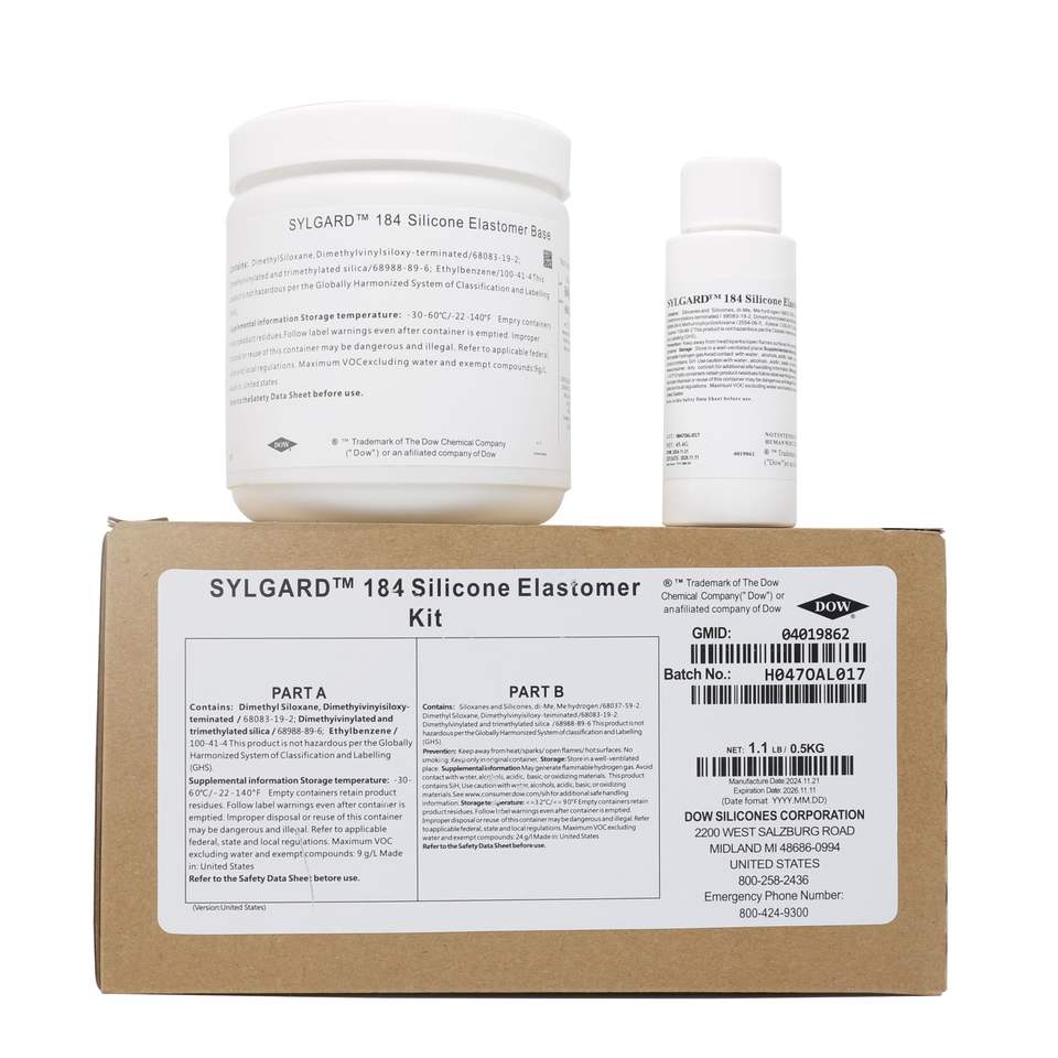 Dowsil SYLGARD 184 Kit de elastómero de silicona 1,1 LB Set D o W Corning Base de dos partes + agente de curado solidificador Original genuino