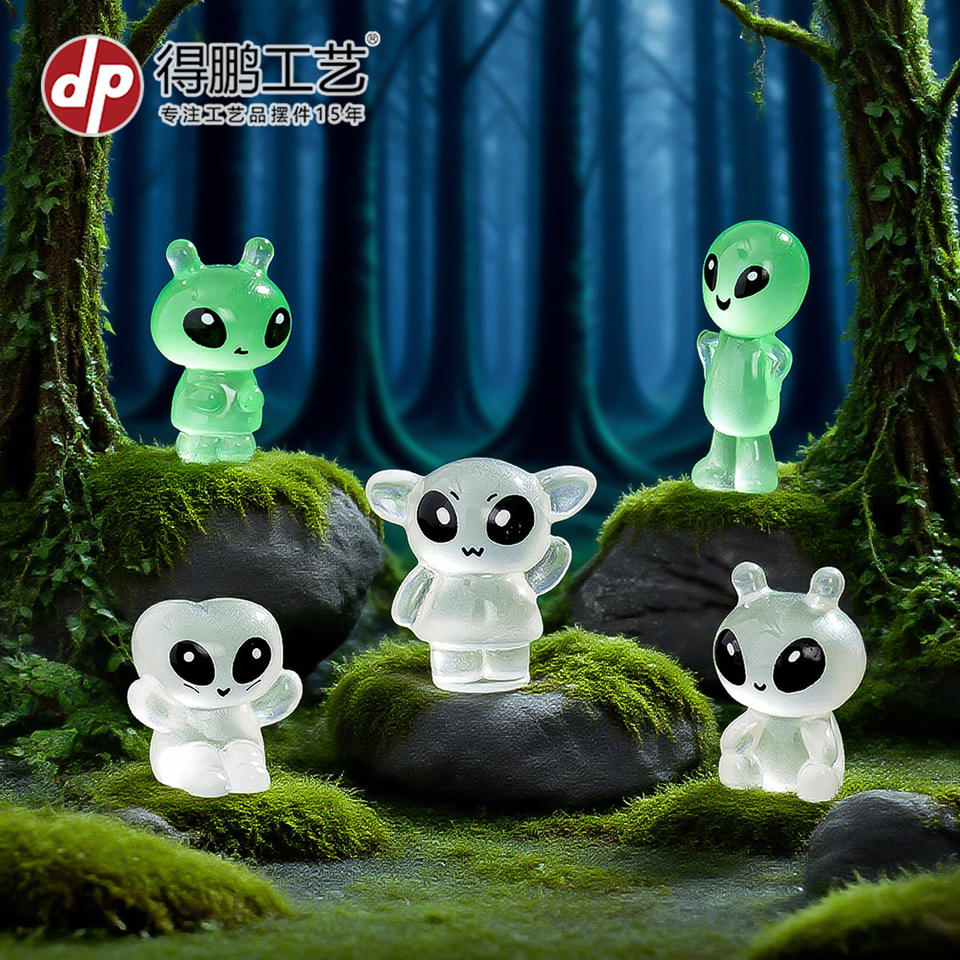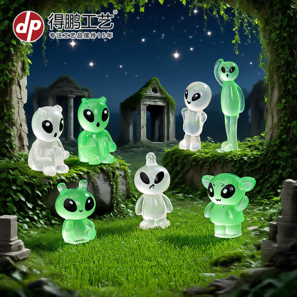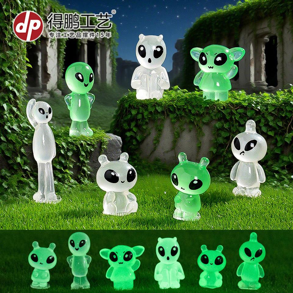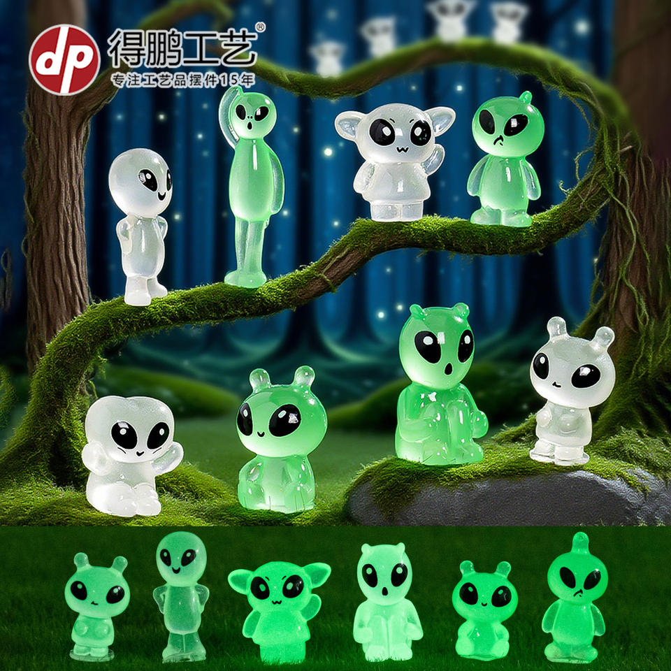 Figuras de resina Dp Alien que brillan en la oscuridad, mini adornos para exhibición decorativa