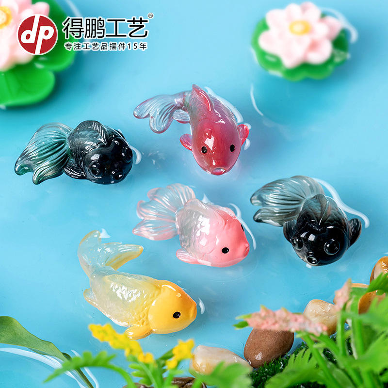 Mini figuras de resina de peces Koi para decoración de acuarios, adornos de paisajismo para botellas ecológicas, figuras de peces pequeños coloridos de estilo caricatura.