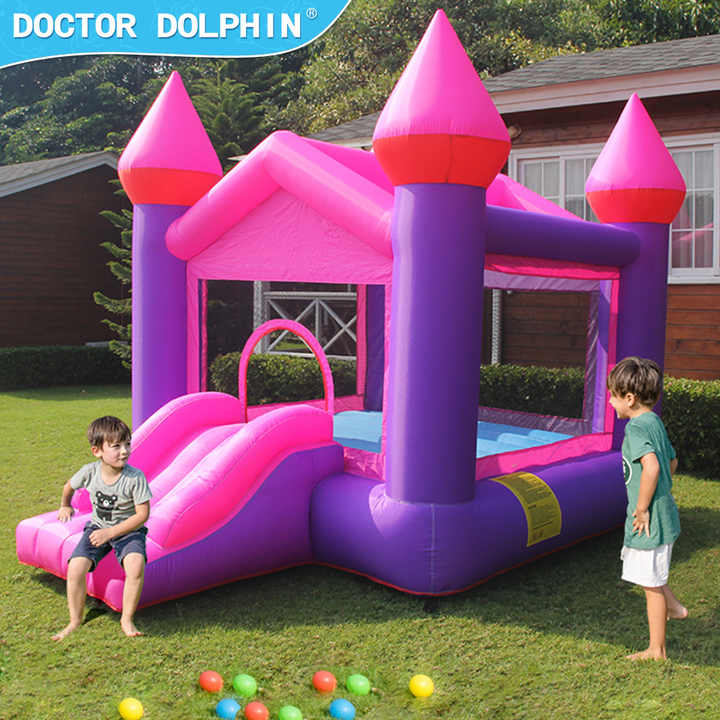 Castillo Inflable Pequeño Dr. Dolphin, Trampolín, Tobogán para Patio de Juegos en Casa, Serie 6, Castillo Hinchable Combinado, Material de PVC, 100-500 kg