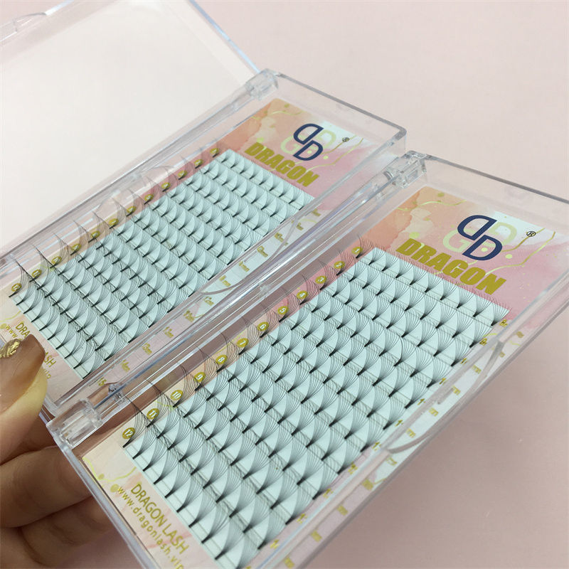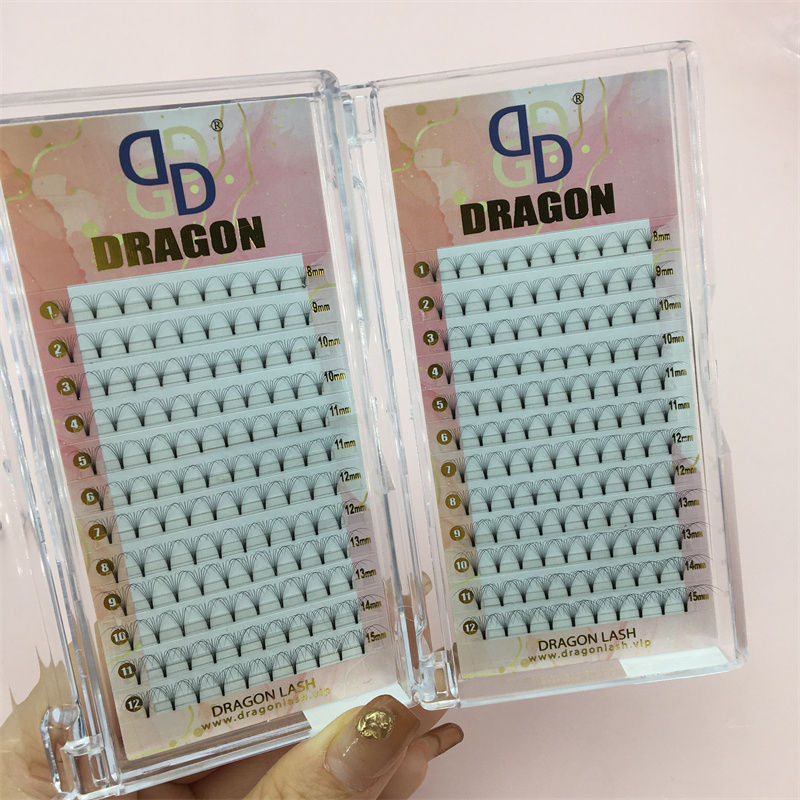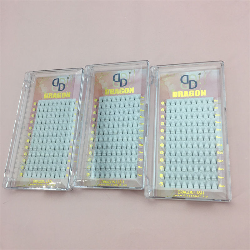 Extensiones de pestañas prefabricadas de seda PBT Premium de alta calidad Dragon, ventiladores de tallo corto con pestañas de alto volumen CC Curl