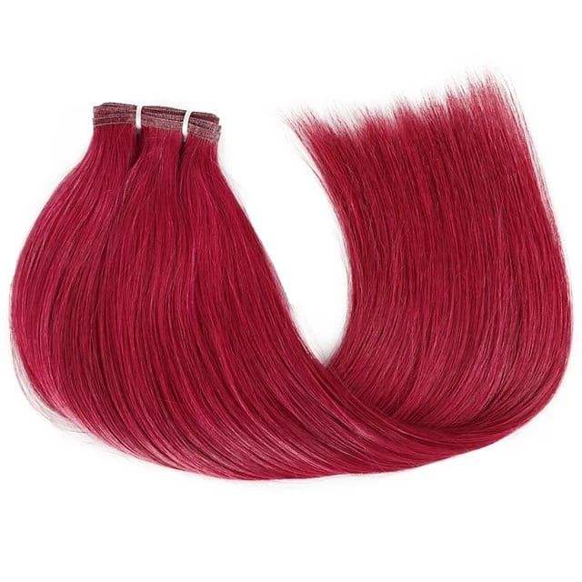 Extensiones de Cabello Humano Europeo Remy 100% de Dragonbeauty Factory, de 10 a 30 Pulgadas, Doble Trama, Lisas, Teñidas de Rojo