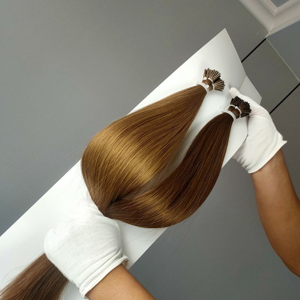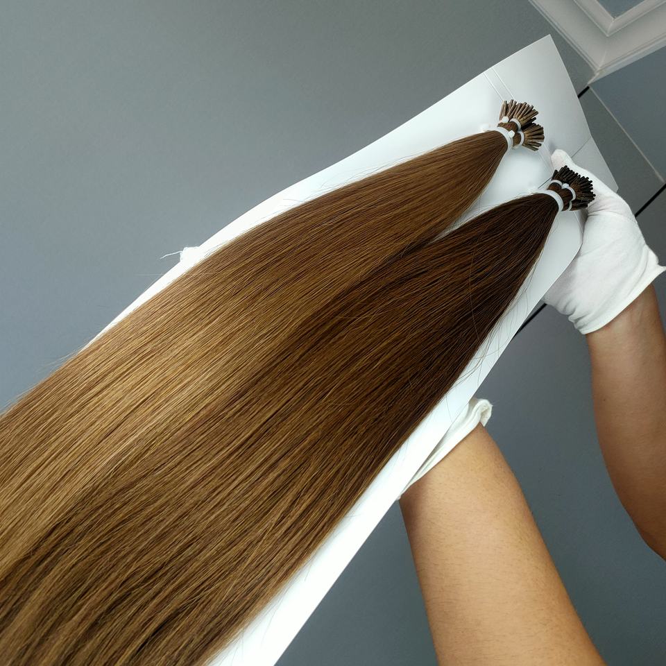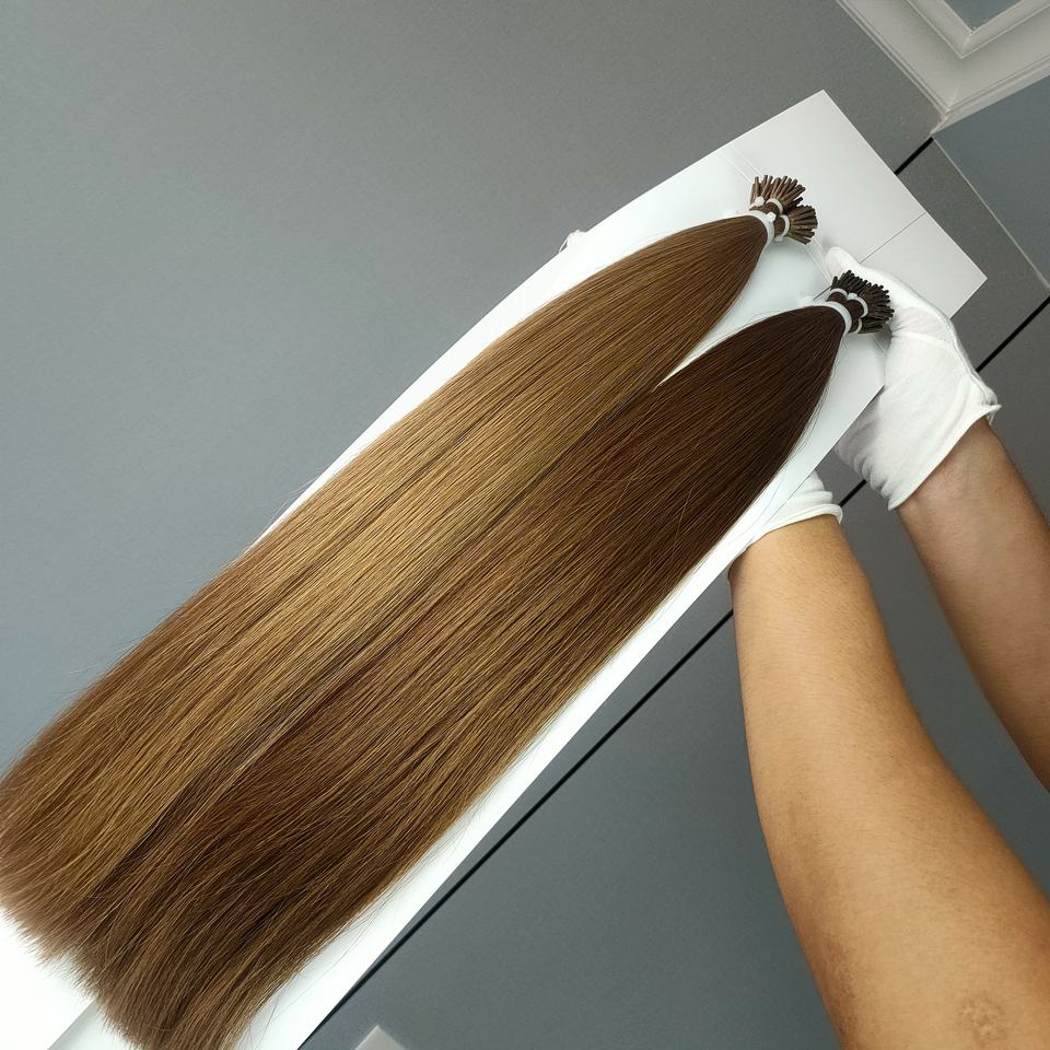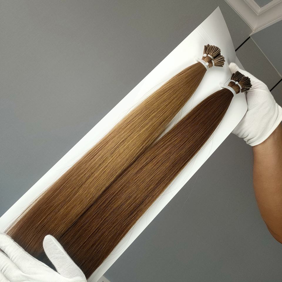 Dragonbeauty Factory - Cabello Humano 100% Remy, Cabello Ruso de 10-30 Pulgadas, Cabello Virgen con Punta I, Puntas Gruesas, Doble Trama, Color Marrón