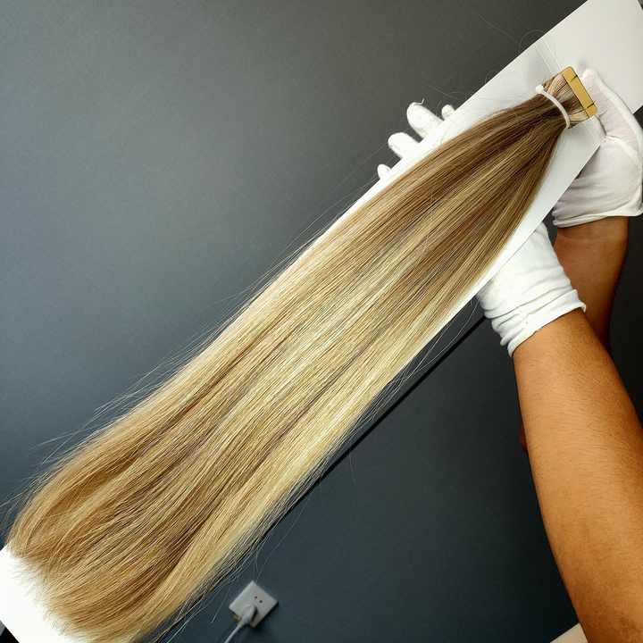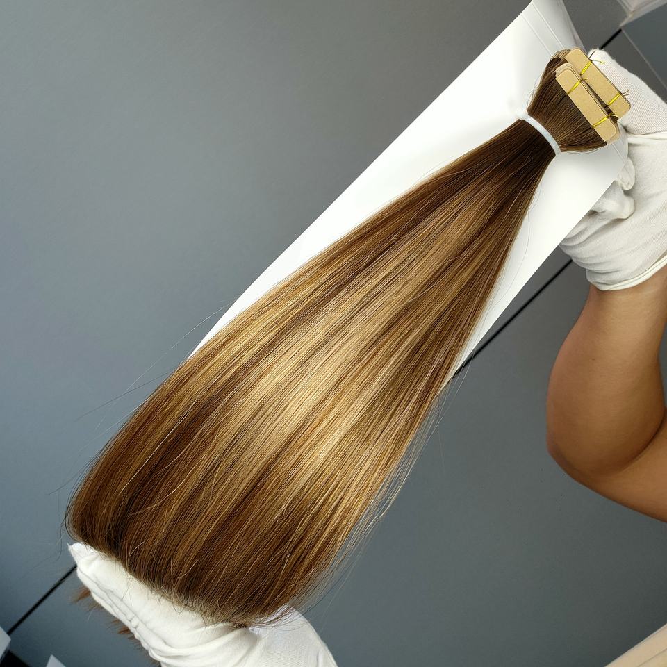Extensiones de cabello humano virgen Dragonbeauty Factory 100% Remy de 10-30 pulgadas con cinta adhesiva de doble cara invisible.