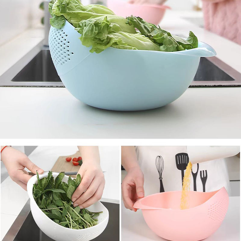 Cesta de drenaje multifuncional para lavar arroz y filtro - Cesta de plástico creativa para lavar arroz