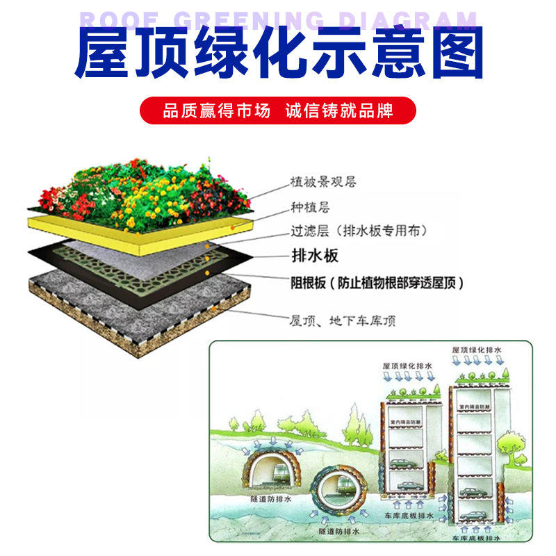 Drainage Board Plastic Interlocking For Roofing Landscaping Basement Garage Waterproof Root Barrier Filtration