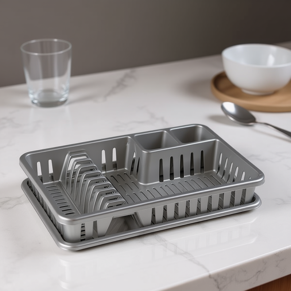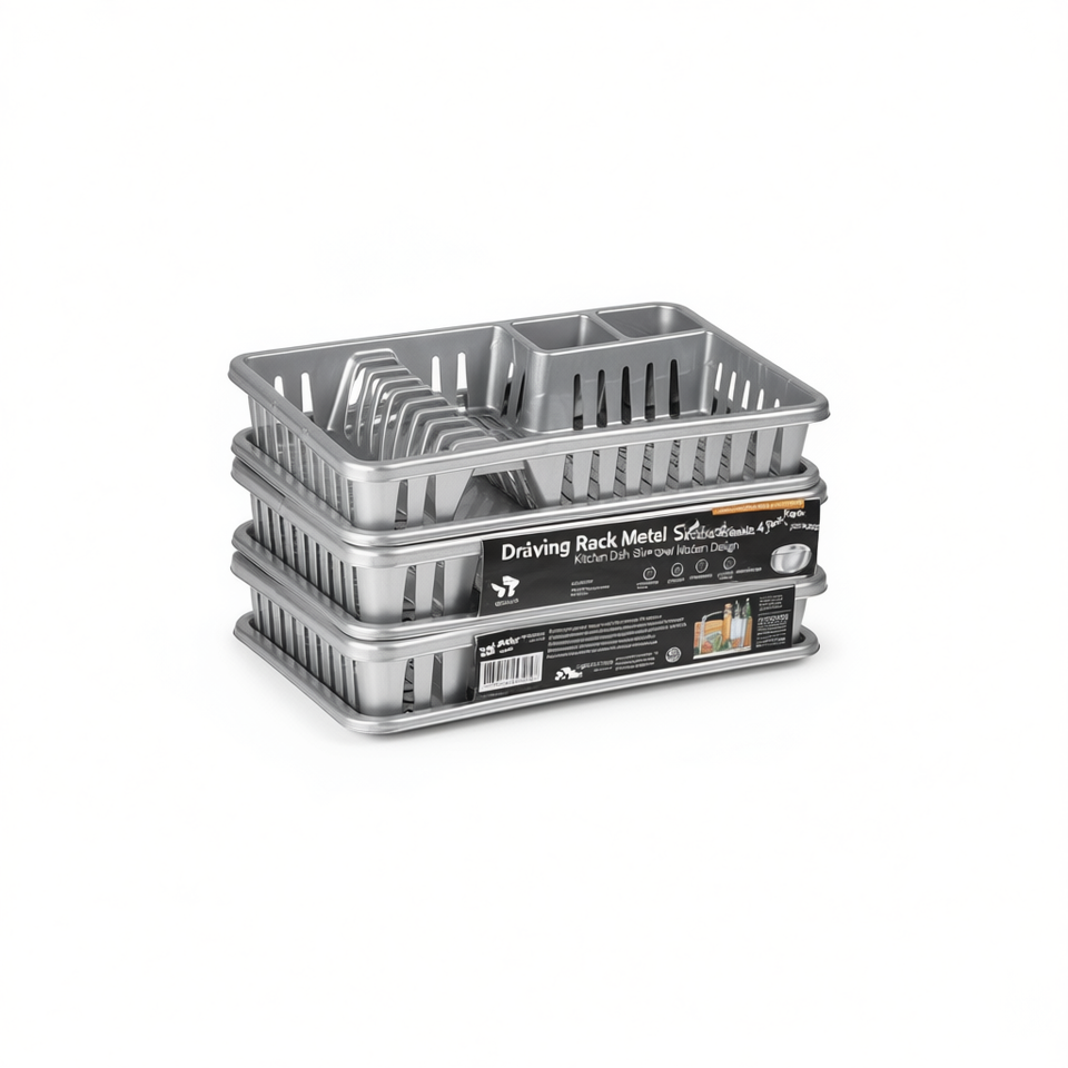 Escurridor de Platos Apilable de Metal Plateado, Paquete de 4, Almacenamiento de Platos y Tazones para Cocina, Diseño Moderno