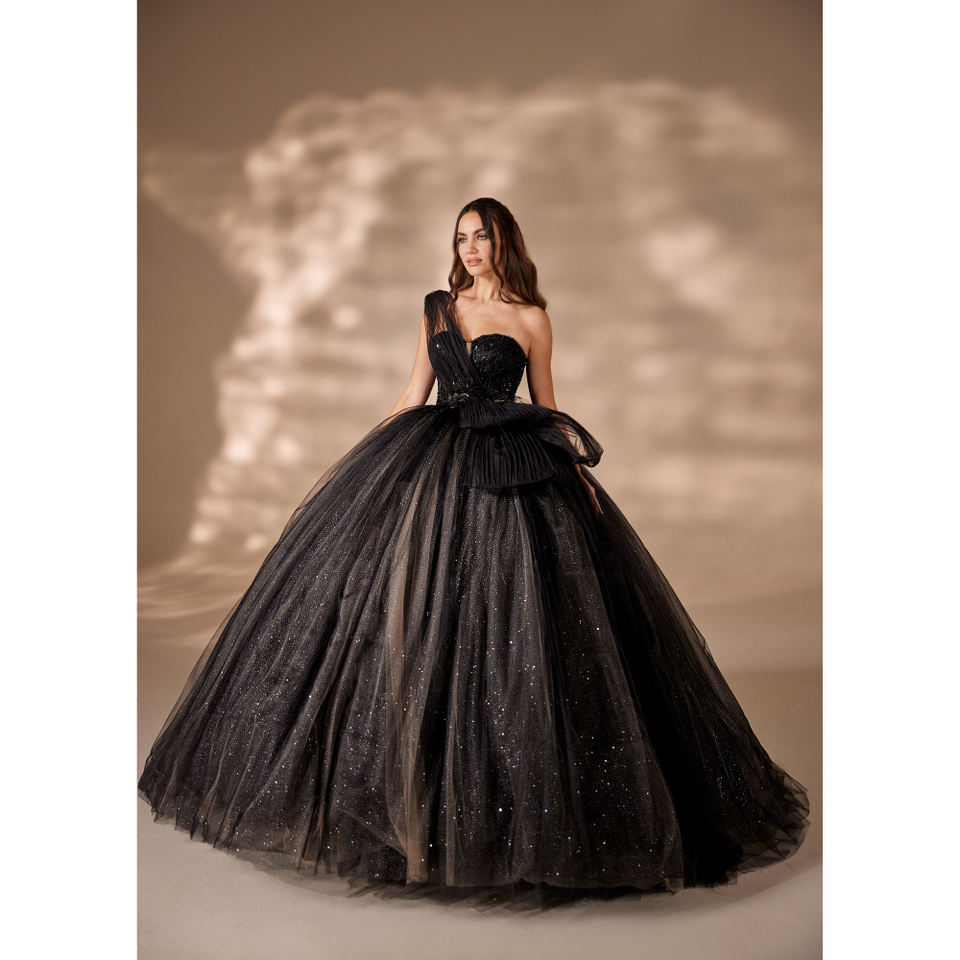 Dramático Vestido de Gala Negro Medianoche de Un Hombro - Colección Haute Couture 2026