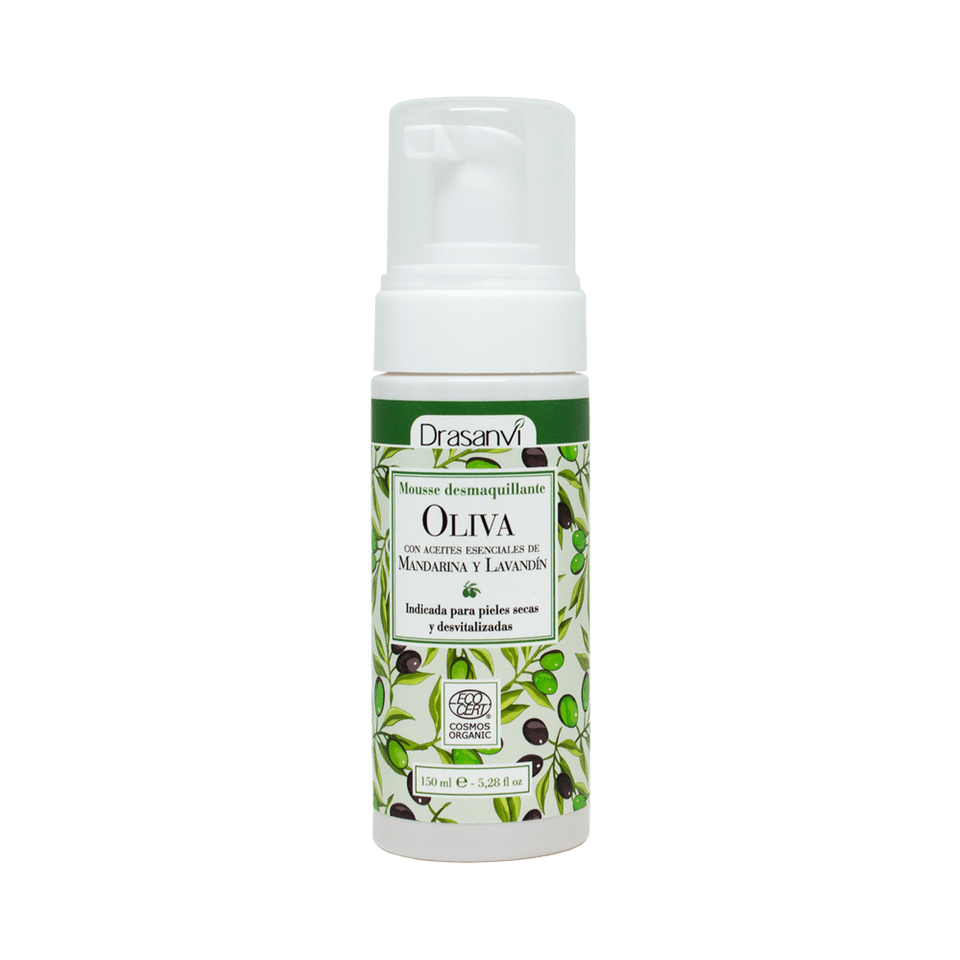 Mousse Desmaquillante de Aceite de Oliva Drasanvi 150 ml, Ecocert BIO, Limpieza Profunda Facial, Limpiador de Poros, Reafirmante para Piel con Acné