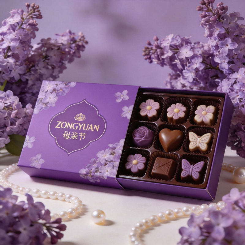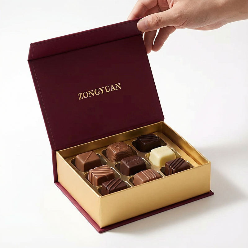 Caja de Embalaje de Chocolate Colorida con Logotipo Personalizado Laminado en Relieve, Patrón de Lujo, para Dulces Gourmet, Bodas y Eventos