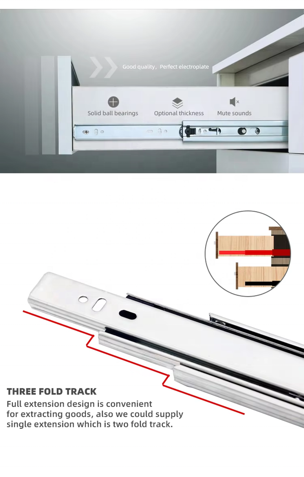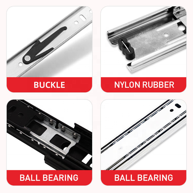 Diapositivas para cajones, caja de almacenamiento telescópica con rodamiento de bolas extraíble, canal de triple extensión, guías para cajones de riel deslizante para muebles