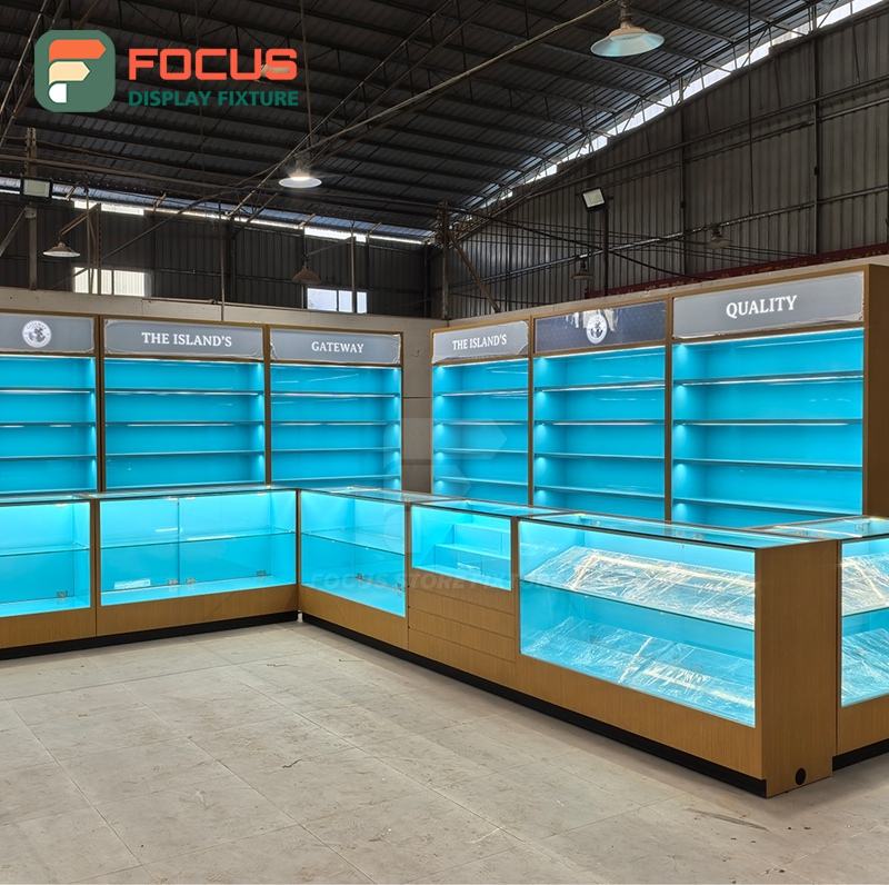 Vitrina de Exhibición para Tienda de Cigarrillos, Estilo Cajón, de Madera y Vidrio, con Iluminación LED, Mostrador para Exhibición de Tabaco