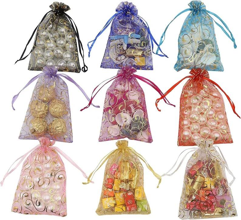 Bolsas de Organza multicolor con cordón, bolsas de recuerdo, Chocolate, frutas secas, joyería, bolsa de embalaje, maquillaje, fiesta, boda, bolsas de recuerdo